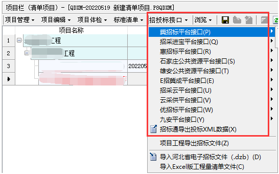 答:在建好的項目工程中,點(diǎn)擊招投標(biāo)接口中的“導(dǎo)入Excel版工程量清單文件”按鈕,如下圖所示: